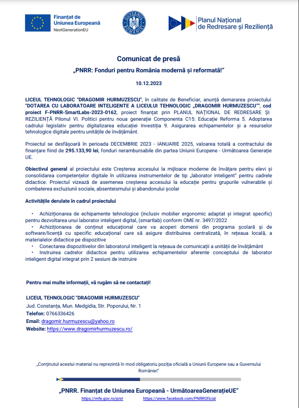 - Comunicat de presă 2023